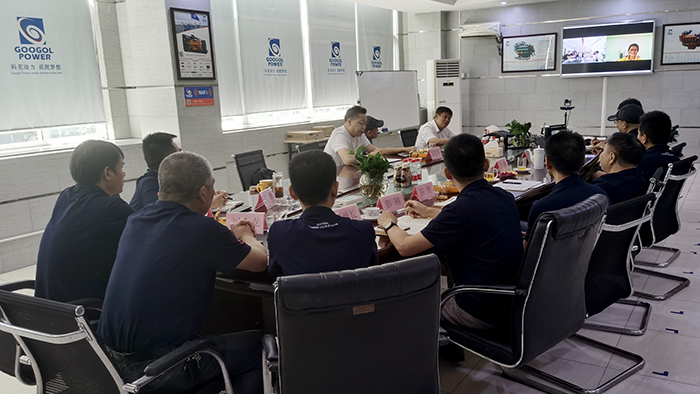 远在美国的温国生董事长通过视频连线对两位协会领导的到来表示热烈欢迎,简要汇报了磐谷的发展情况和产品规划,并表示中国内燃机工业协会作为行业最高组织,拥有众多优质资源,磐谷人十分乐意与协会紧密互动,开展必要的合作。公司研发、技术、质量、供应链、生产、知识产权等部门的相关负责人一起参与了座谈。贾滨副秘书长分享了国际国内内燃机工业发展最新信息,对磐谷即将开始建设的新生产基地绿色工厂设计给出宝贵建议,结构双碳目标之下提醒磐谷人从全生命周期来评估一台发动机的碳排放,指导公司申请国家知识产权奖等。双方还就磐谷动力与天津大学内燃机研究所即将开展的协同创新与技术协作进行了讨论并初步达成共识。成都特斯拉云网络技术有限公司创始人熊智先生和联合创始人艾志军先生分别从成都和广州赶来,一同参与了会见交流,并与磐谷动力CTO倪金陵先生就发动机上云等议题进行了初步交流。